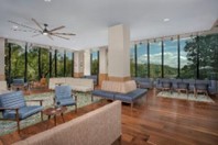 From almost any view, the lake is an ever-present feature of the Merriweather Lakehouse Hotel™ …as if intentionally created to enhance the ambiance and experience for hotel guests. Expansive floor-to-ceiling windows and doorways which open out to expansive patios virtually bring the lake inside for guests to experience. The newly re-designed lobby also offers a wide view of the lake and features an inviting brick fireplace. The lobby and hallways present an historical poster and pictorial display of famous artists who have performed at the Merriweather Post Pavilion. The village’s own beautifully landscaped and night-lit wooden ramp slopes gently down from the hotel’s surrounds to a lake dock. To all appearances, it would seem to be an actual extension of the hotel and provides guests a serene sanctuary along the water’s edge.