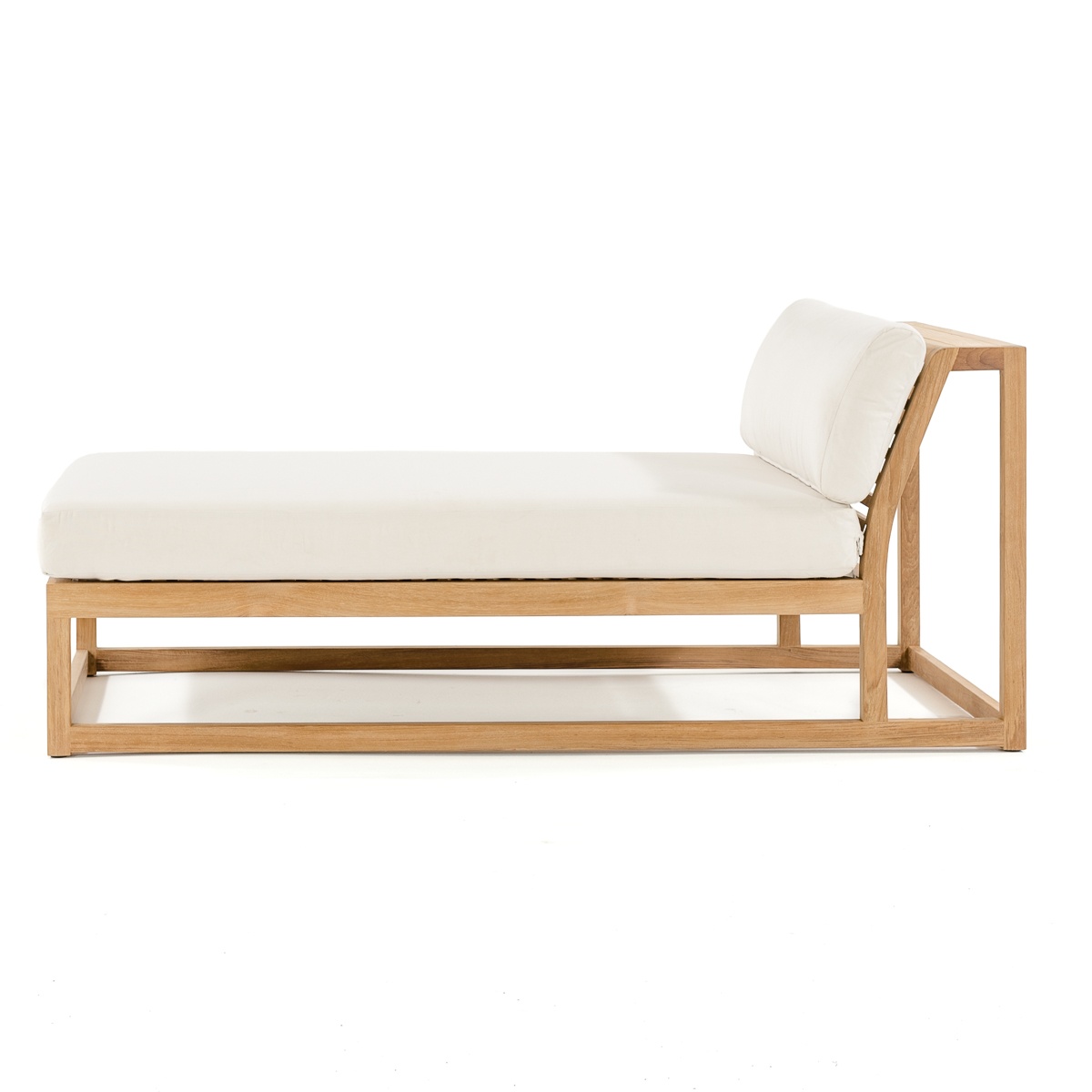 The Maya Teak Chaise Daybed can be used alone as a lounger or can be combined with other pieces from the Maya Collection. Plush cushions sit atop a minimal but extremely sturdy teak frame, giving the daybed the impression of lightness.