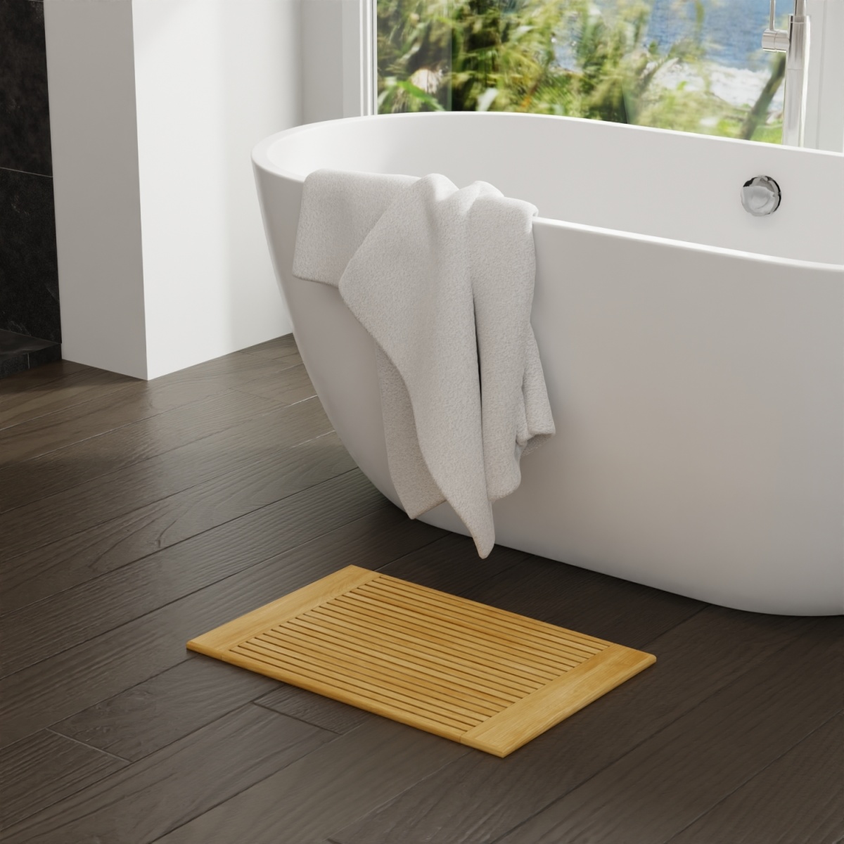 Our Pacifica Bath Mat is meticulously crafted in the traditional mortise and tenon method to ensure long lasting durability in the sauna or shower. Due to its high resistance to water and humidity, this bath mat will not hold water like other fabric bathmats. Rubber pads on the bottom prevent slipping on any surface, while its micro-smooth finish and rounded edges bring pure comfort after a relaxing shower.