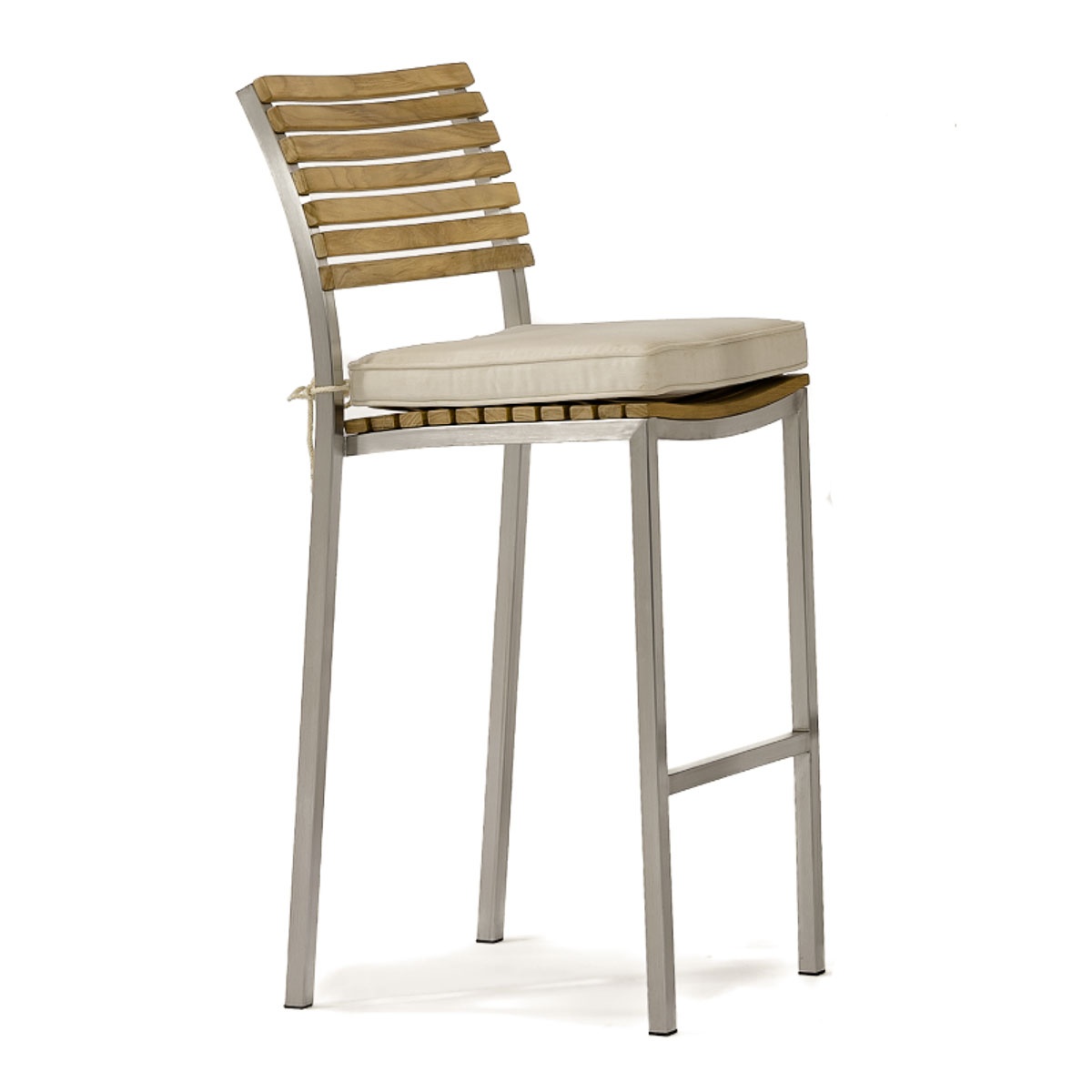 With the interplay of 304 Stainless Steel and Teak Wood, the Vogue Bar Stool defines contemporary style. Curved backrest and seat, and a well-placed footrest, offer lasting comfort even without cushions.