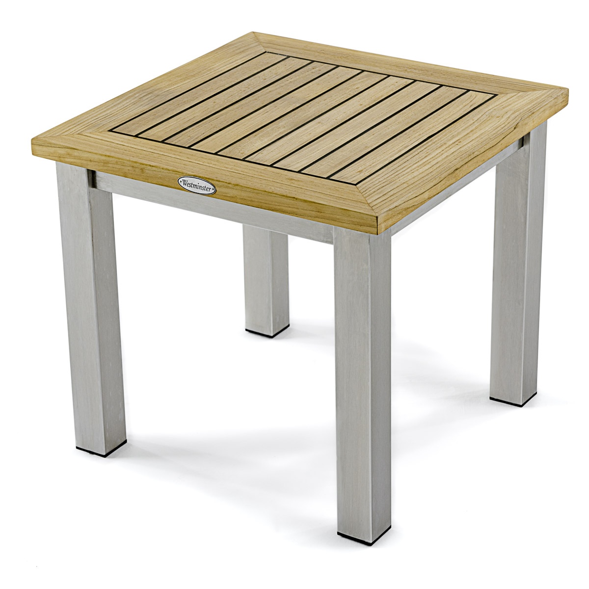 With the interplay of 304 Stainless Steel and Teak Wood, the Vogue End Table defines contemporary style. The tabletop is caulked with Sikaflex, a high-grade polyurethane sealant that prevents liquids from seeping through while providing a nautical appeal. Plastic glides on the stainless steel legs prevent scratches on any surface, indoors or out.