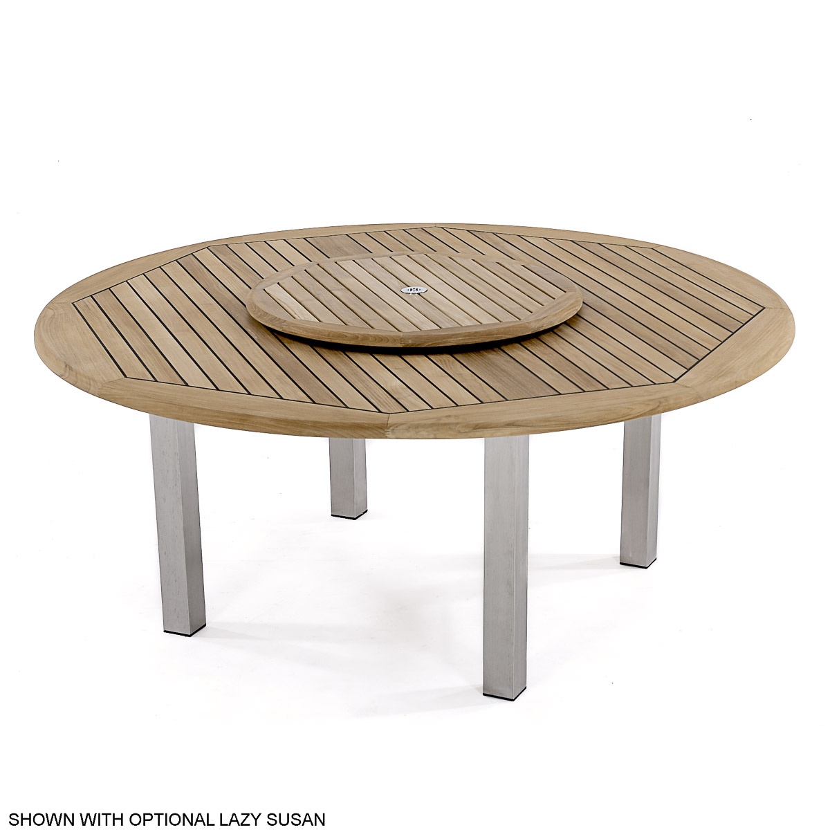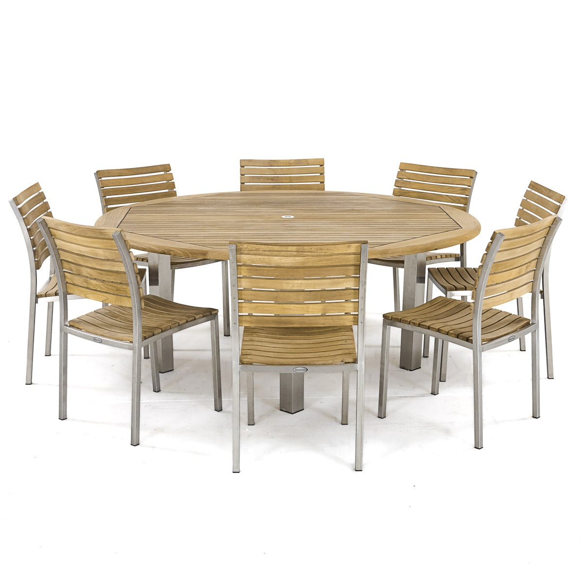 With the interplay of 304 Stainless Steel and Teak Wood, the Vogue Round 6 ft Teak Outdoor Table combines contemporary design and robust characteristics. The tabletop is caulked with Sikaflex, a high grade polyurethane sealant that prevents liquids from seeping through while providing a nautical appeal. Part of the Vogue Collection