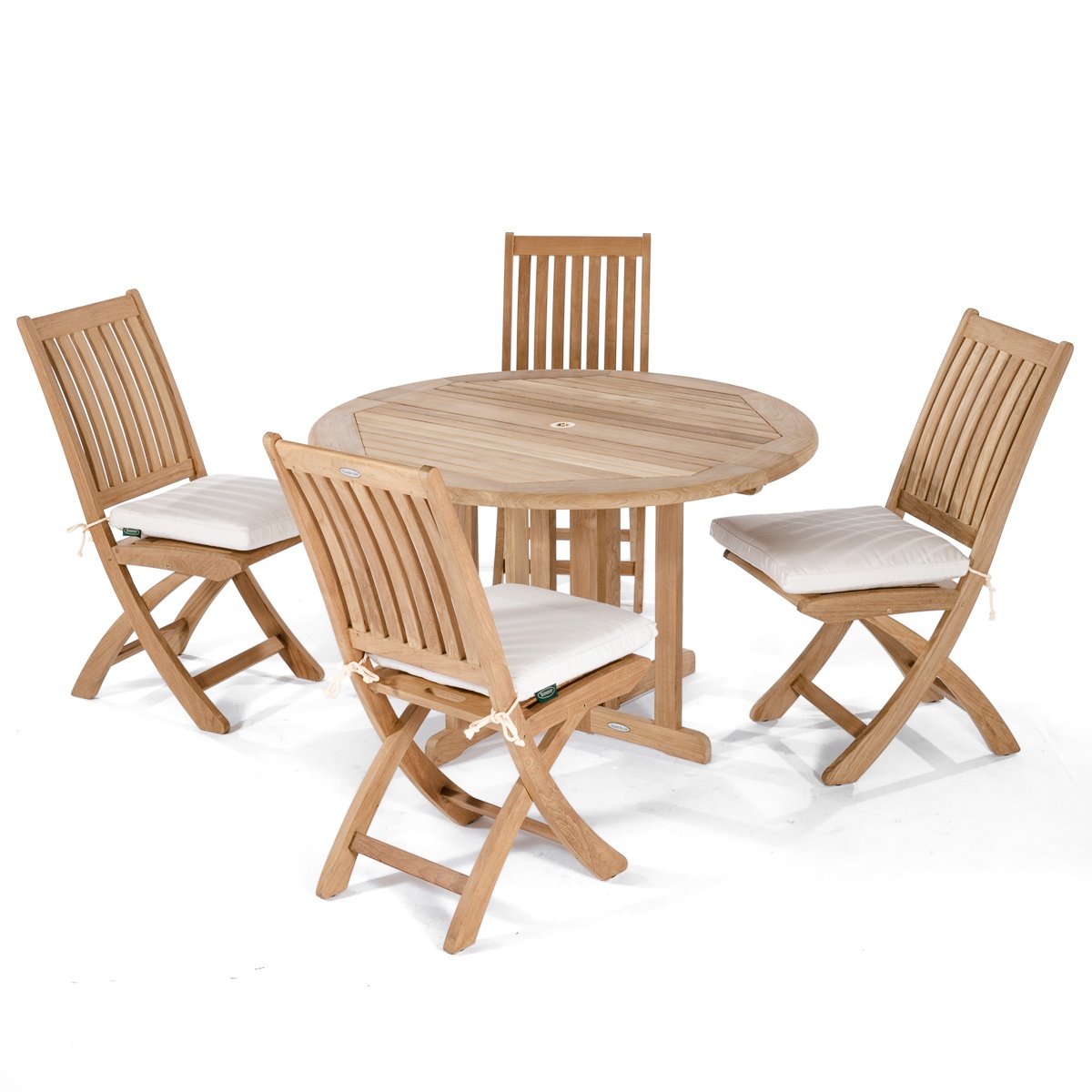 4 ft Barbuda Table: Glides Barbuda Teak Folding Chair: Glides |