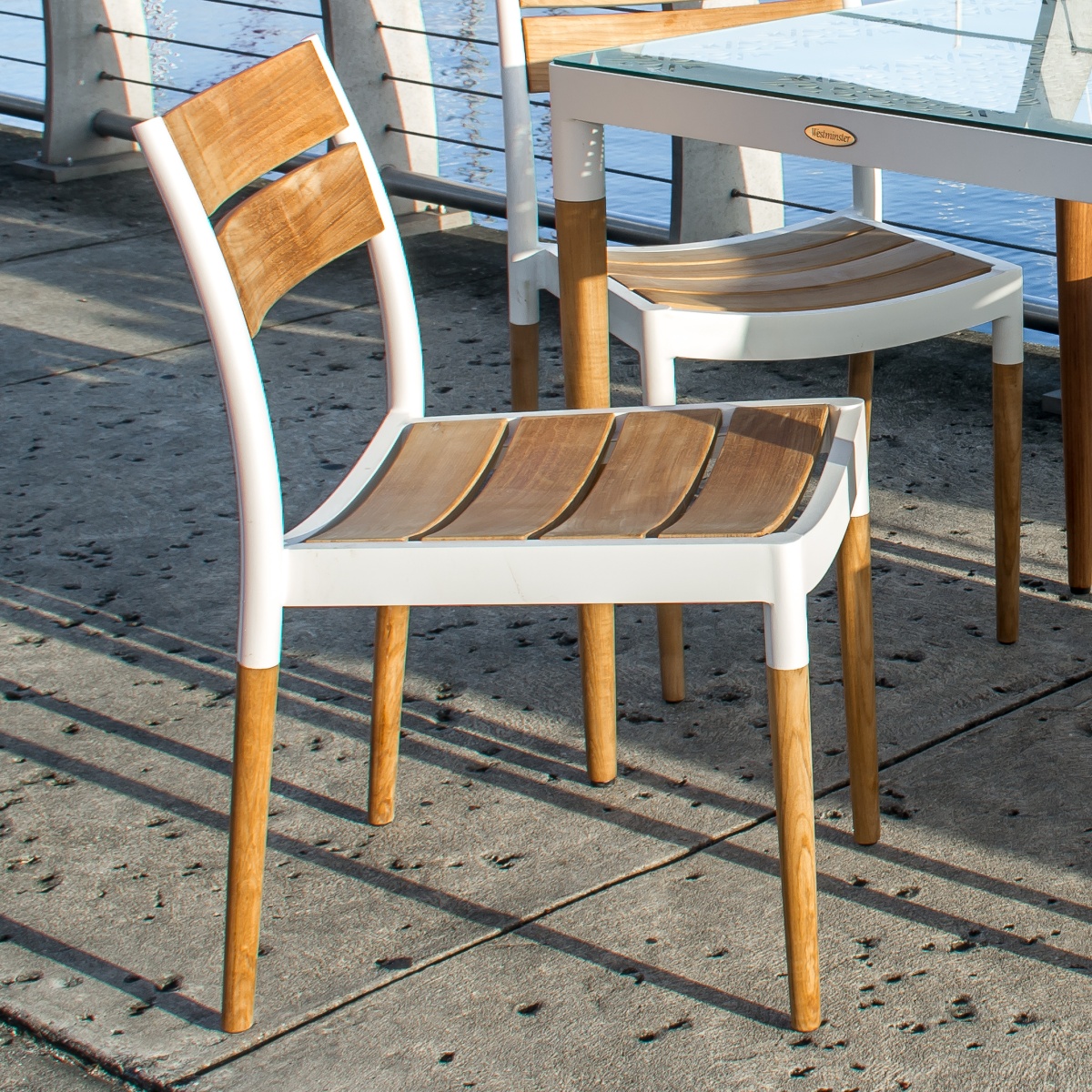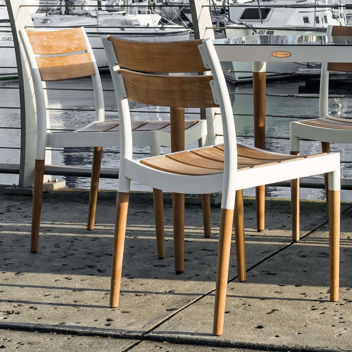 Bloom Side Chair-Powder Coated Aluminum & Teak: Glides Grand Hyatt Teak Table: Glides |